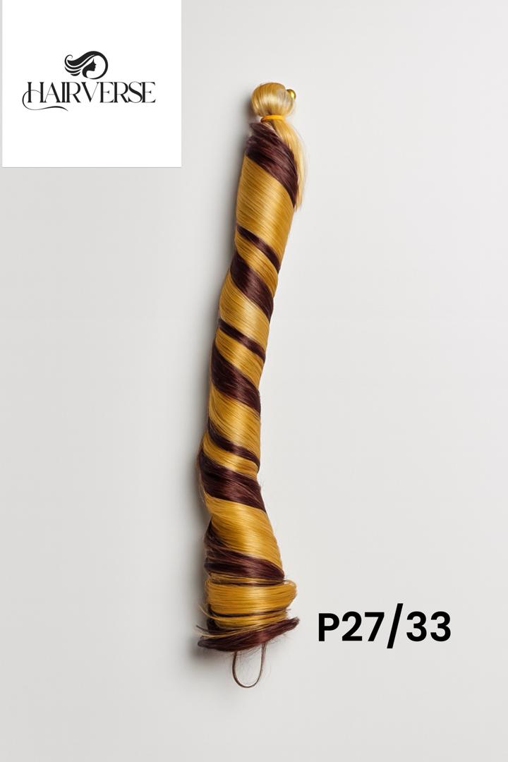 Our two-tone Honey Blonde and Dark Auburn Braiding Extension features a gorgeous curly pattern, delivering a sleek, radiant, and polished finish. Created for seamless French braiding, this premium synthetic extension features a smooth, silky texture that is lightweight, natural-looking, and beautifully refined.